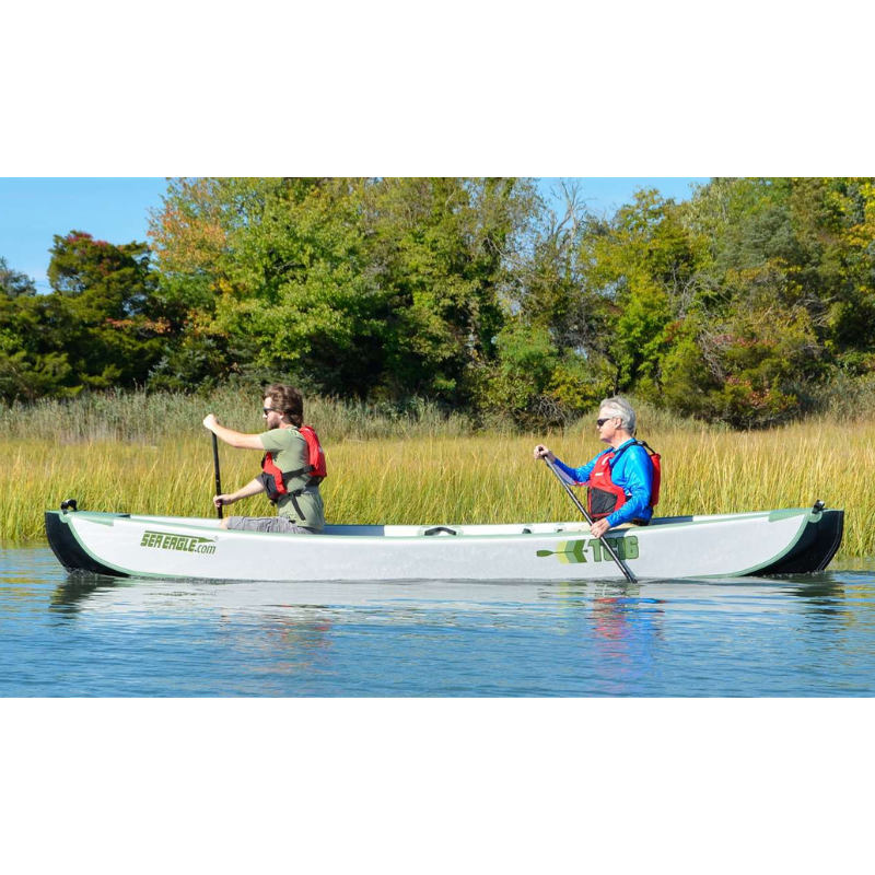 The Sea Eagle TC16™ Inflatable Travel Canoe is the world’s first and original patented high-pressure all drop-stitch inflatable canoe, redesigned to be lighter, stronger, and more packable than ever before.